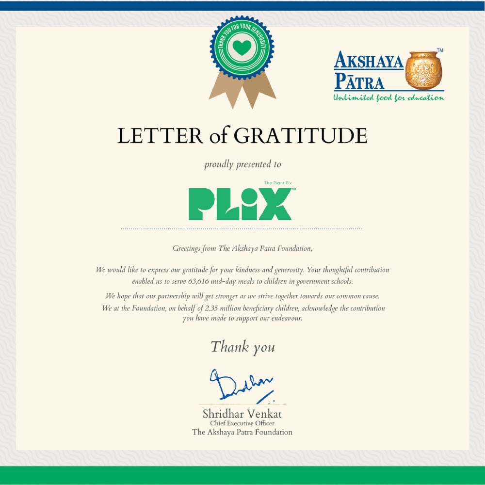 Together, we pledge to provide a brighter future by ensuring every purchase of PLIX products contributes to Akshaya Patra's vision of feeding 3 million children in India by 2025. Every order you place feeds 1 underprivileged child in India. Let’s join hands to combat hunger & malnutrition, nurturing the potential of young minds and building a foundation for a healthier, educated India.